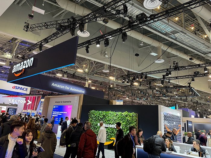 在今年的展会上,你能看到固特异轮胎赞助的纳斯卡参赛车辆。这项在北美地区家喻户晓的赛车运动,如今也被贴上了更多科技的标签。你也能看到亚马逊展示自己与三菱公司在北美地区展开的自动驾驶相关案例,毕竟智能物流如今也算标准的科技话题。