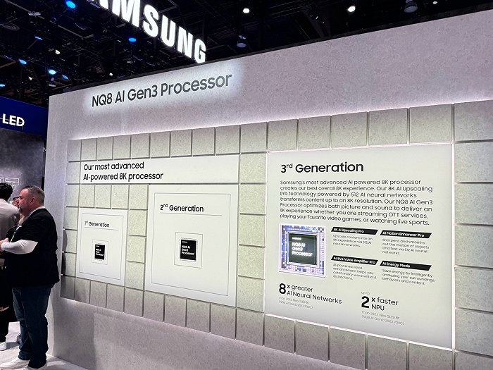 三星将“AI for All”横幅挂在了展馆最显眼的各种位置上,还发布了新一代AI芯片NQ AI Gen 3处理器。三星展区中占据大量面积的智能家居产品,更是主打人工智能,新的人机交互界面和IOT(物联网)功能已经具备极高的落地可行性。